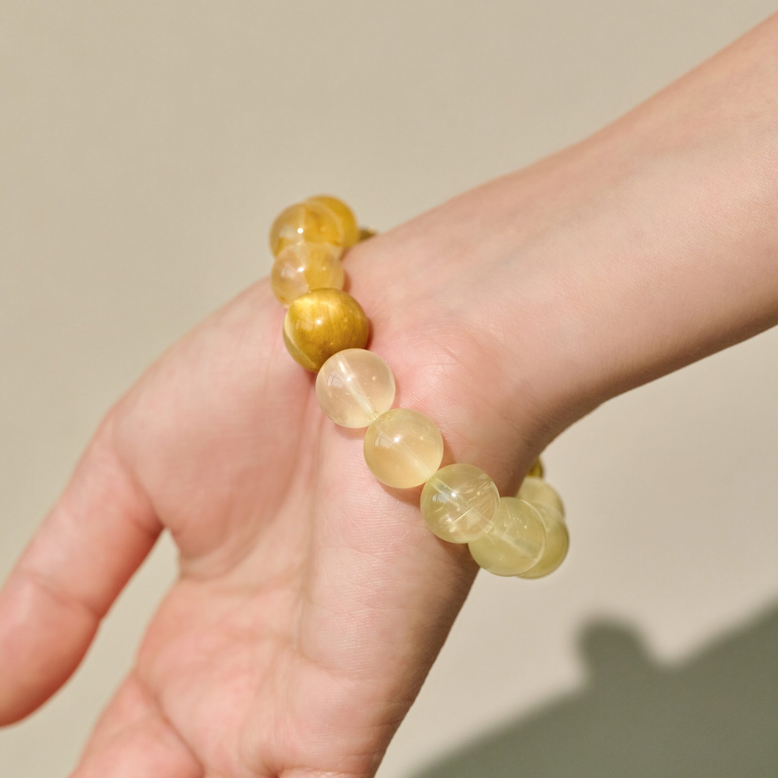 The colors possess a silky, tiger-eye luster that layers like a strand of warm sunlight wrapped around your wrist.